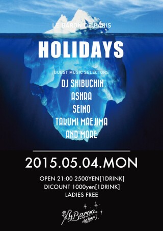 ゴールデンウィークも佳境にさしかかる5月4日、ルバロンで開催されるのはHOLIDAYS。自然に親しむと共に、その恩恵に感謝し、豊かな心をはぐくむことを目的とされている祝日であるみどりの日。休みキブンを充分に満喫するならココが狙い目!爽やかに軽やかに、踊ってみませんか。