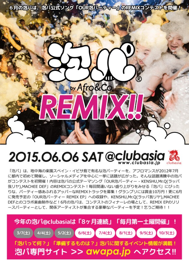 REMIXコンテストを記念して、6月6日(土)の泡パは「泡パREMIX」と題してパーティーを開催。