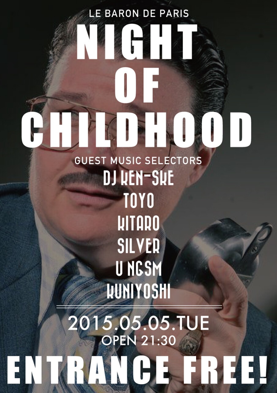 今夜開催されるイベント『NIGHT OF CHILDHOOD』本物の遊びを覚えた大人たちが夜な夜な地下に潜って子供じゃできない刺激的な遊びをはじめます。しかも、今夜に限ってエントランスは全員FREE!!! GW序盤に差し掛かった今夜はルバロンに集合。