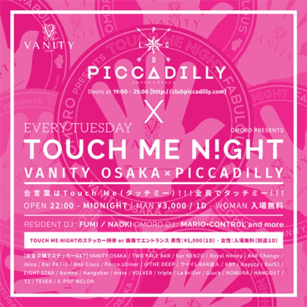 VANITY OSAKAまたは心斎橋周辺の加盟店でTouch MeステッカーをGET。