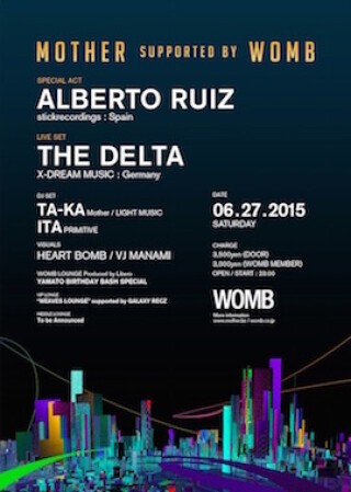 Our next headlining performance will be THE DELTA, a solo project of MARCUS C MAICHEL, the front man of a group legendary in the industrial techno scene, X-DREAM. Praised as "high-end electronics," we think many of his fans would jump at the chance to experience how he challenges the limits of sound production at WOMB. We are also bringing aboard a special act that first hit us with their talents in DUBFIRE and PIG & DAN, and continue to receive rave reviews from all the current top groups in the techno scene. Combining the skill of artists like Richie Hawtin, Adam Beyer, Marco Carola, and Joseph Capriati comes the highly-anticipated ALBERTO RUIZ.