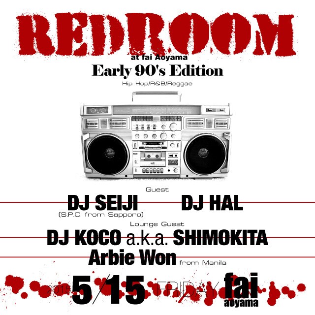 実は去年の8月以来の開催になるfaiでのRedroomですが、今回は原点に立ち返りDJ Play Onlyになります。