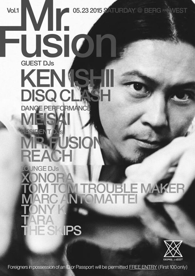日本人向けのイベントが多い中、日本のテクノミュージックを発信する場所として、外国人をターゲットにした記念すべき第1弾「MR.FUSION」のテクノイベントにKEN ISHIIが登場。近年では国際的な観光都市としても魅力的なスポットとなった東京から、TECHNOを発信する新たなパー ティー“Mr.FUSION”が、六本木からほど近い西麻布BERG&WESTでスタートする。