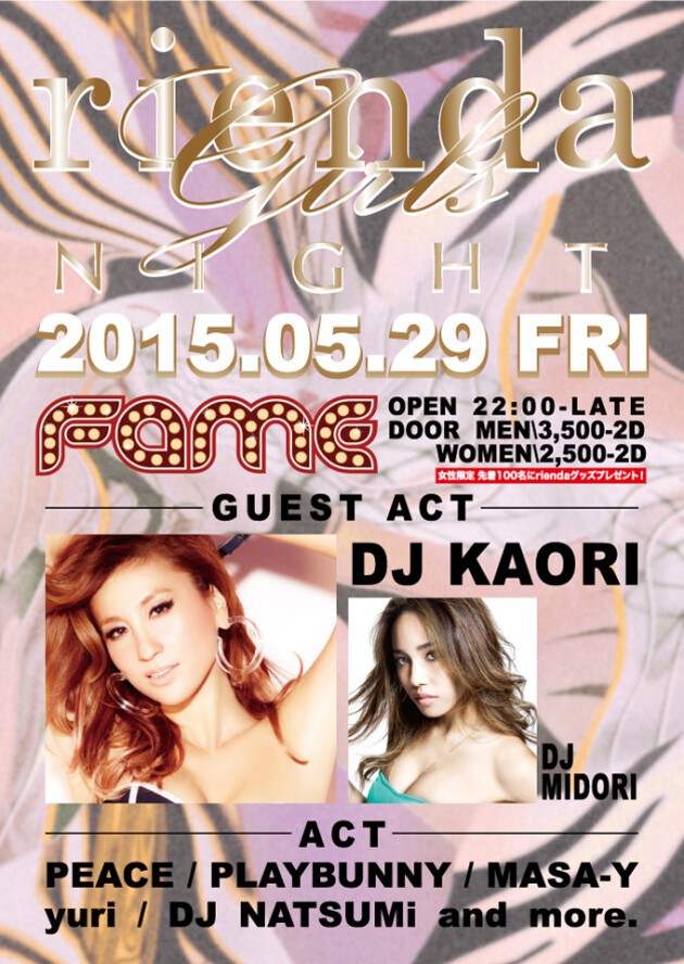 今年4月、表参道にNEW OPENしたばかりのクラブ「FAME」と、説明不要の大人気ブランド「rienda」とのスペシャルコラボナイトが開催決定!