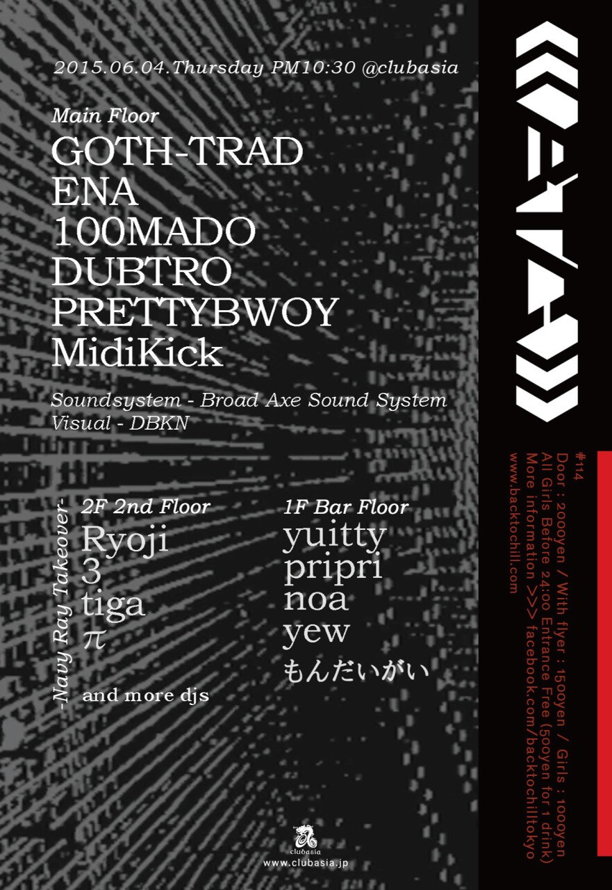 国内最強ダブステップ・パーティー「Back To Chill」!!!