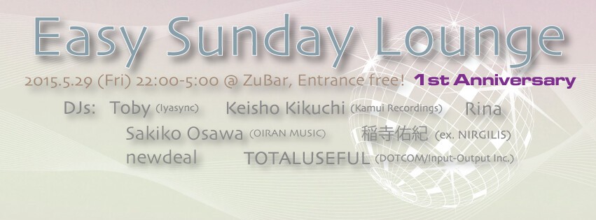 おかげさまで今月でEasy Sunday Loungeが1周年!今回はいつものサンデーアフタヌーンとは趣を変え、5/29(金)22:00スタート!アニバーサリーとして出演アーチストによるコンピレーションもKamui Recordingsから絶賛リリース中!遊びキテン!