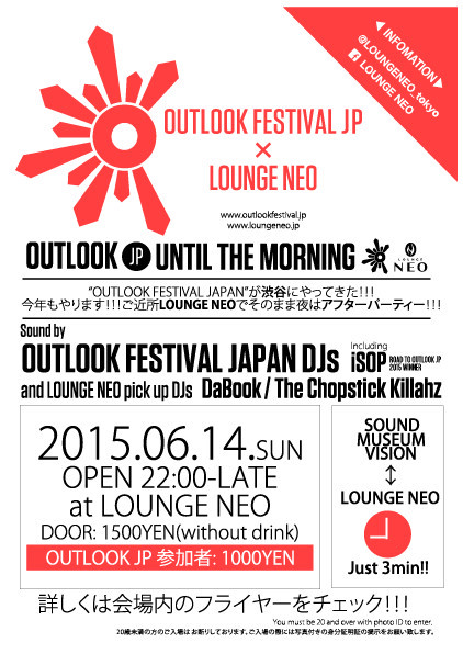 ★OUTLOOK FESTIVAL 2015から移動される方は¥1000でご入場できます★