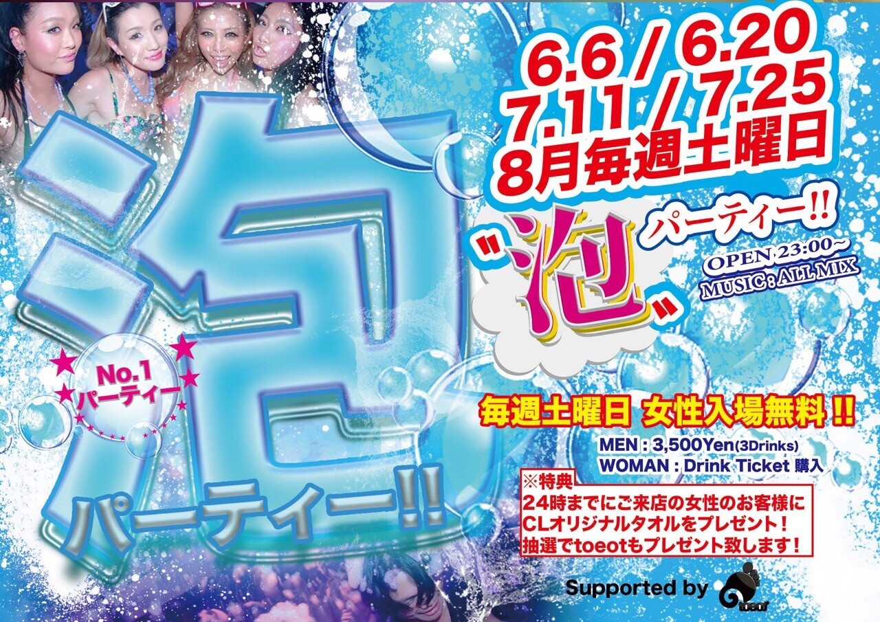 女性は入場無料の上、24:00までのご来店の方にはクリスタルラウンジのオリジナルタオルをプレゼント!