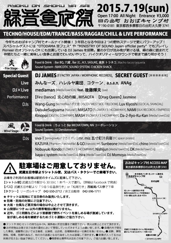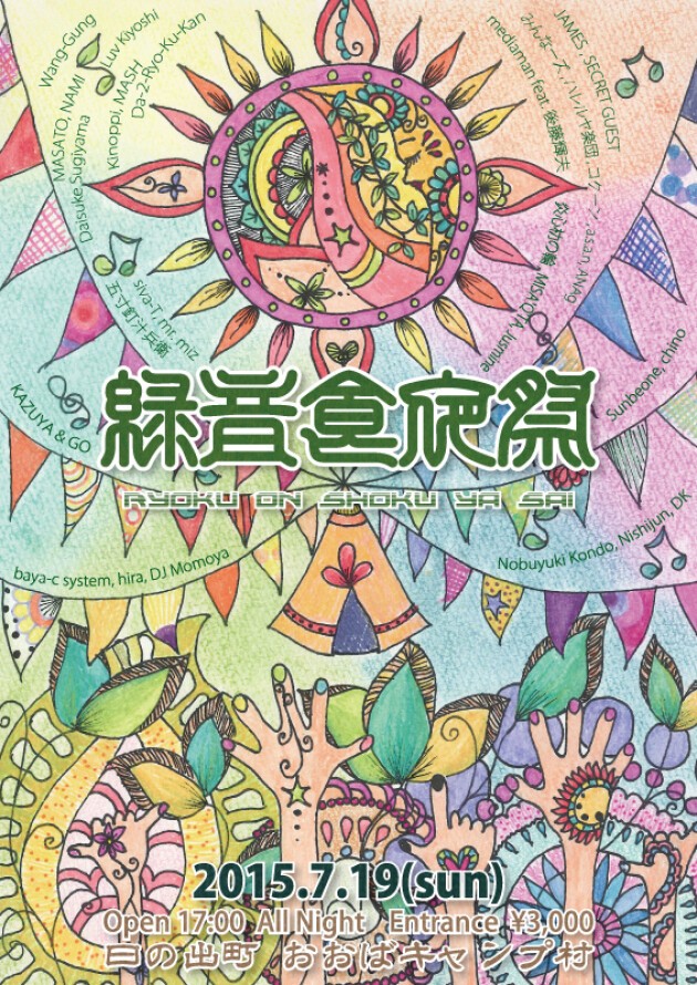『緑音食夜祭2015』今年もおおばキャンプ村でオールナイト開催!3年目となる今回は2つの野外ステージで益々パワーアップ!