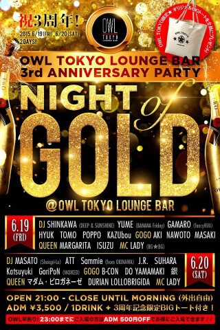 早割 :¥3,000/1D + OWL3周年ノベルティトートバッグ(23時までにご来店の方)