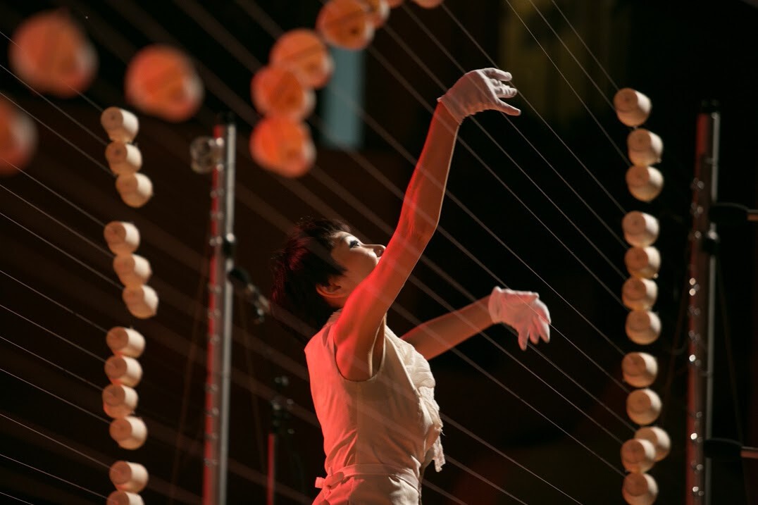 Stringraphy is unique in the world.It is a special harp like original instrument consisting only of silk strings and paper cups.