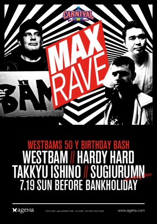 そして今回、日本をこよなく愛するウェストバムと石野卓球の友情によってなんと東京でも「MAXRAVE」が開催されることが決定。ウェストバムと共に盟友HARDY HARDの来日も決定し国内外の豪華ラインナップの共演が実現した。