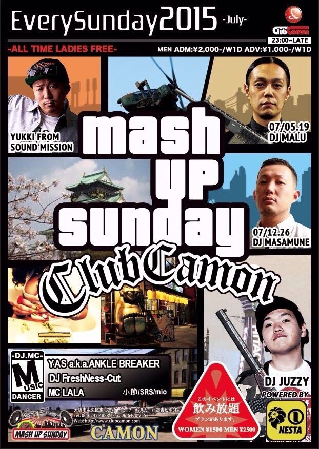 【毎週日曜マショップサンデー】日曜カモンはHIP HOP®GAE PARTY『MASH UP SUNDAY』 Powered By NESTA BRAND★★女性は終日入場無料☆☆CLUB CAMONのLINE公式アカウント登録で割引特典あり☆☆お得な終日飲み放題プランもあります★★