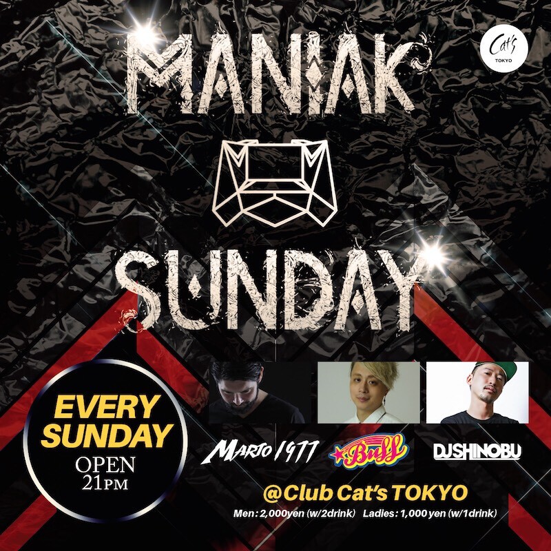 Cat's TOKYOの日曜日は週末だけでは遊び足りないあなたへピッタリのいろんなジャンルの曲が幅広く流れるALL MIX PARTY!!!!! 日曜日はリクエストも対応しておりますので自分の好きな曲を爆音で聴けるチャンス!