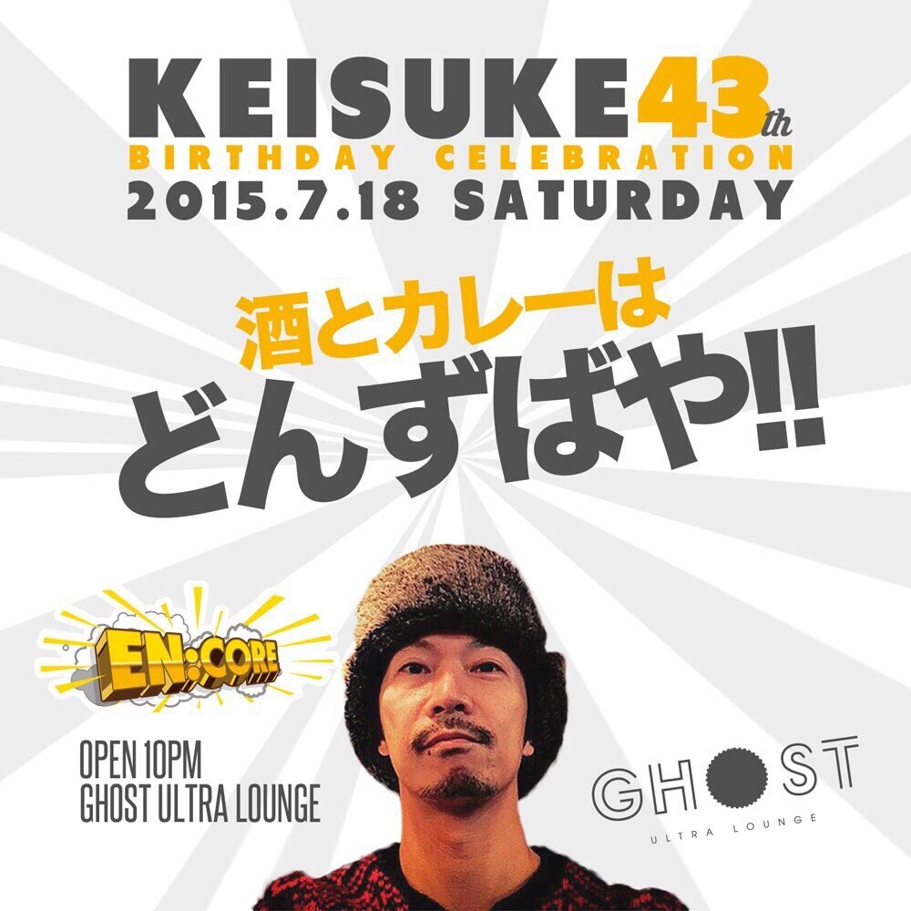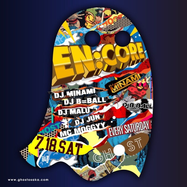 毎週土曜日のGHOSTは大阪のクラブシーンを常に最先端へ引っ張って来たDJ陣を揃え、HIP HOPをベースに"今一番クラブで盛り上がる曲"をオープンフォーマットスタイルでお届けする『EN:CORE』!HIP HOP好きのアナタはもちろん、海外のクラブシーンを追いかけるSoundCloud中毒のアナタもきっと満足できる、唯一無二の内容でアメ村の土曜日の夜を彩ります。