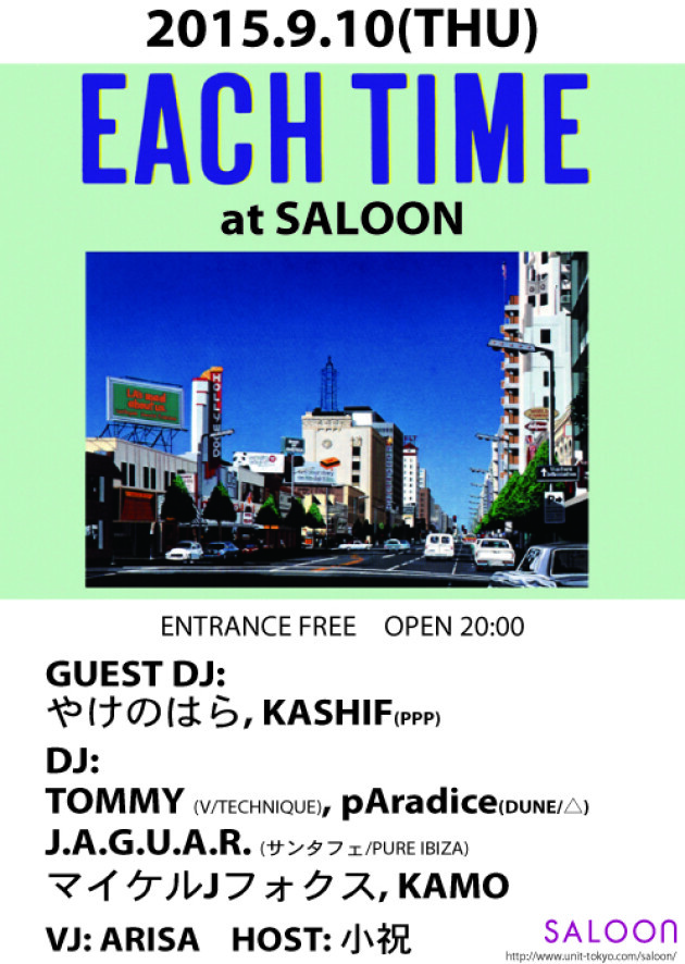 5月の1周年パーティをFORCE OF NATUREのKZAによる和物7inch セット、HOME CUTによるJ-POPセットで大盛況に終え、続く7月ではKOARAでのレギュラーパーティやHOUSE OF LIQUIDの出演等、都内を賑わす女性DJ3人のクルー[S]を迎えたEACH TIME。