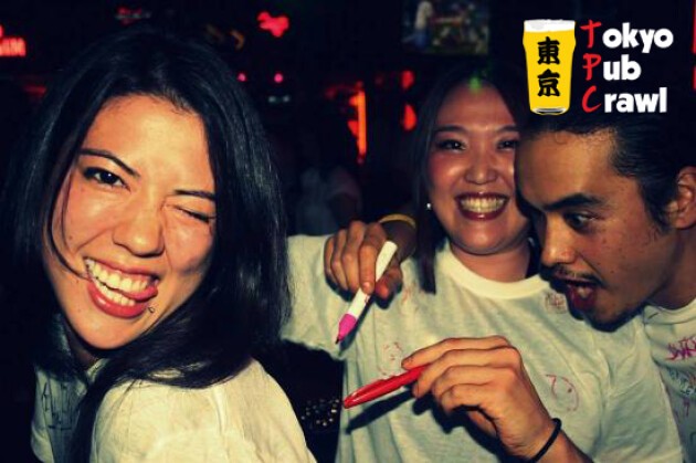The Tokyo Pub Crawl is a “bar tour” or “bar hopping”. Anyone can join, and most people come alone. Participants meet at the starting bar, and visit 3 or 4 other bars together. We walk from bar to bar in one large group. It’s a great opportunity to meet people, have fun with friends, and see Tokyo nightlife. Expect about 70 - 100 people, both Japanese and non-Japanese. Get ready to party!