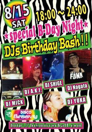 DISCO GroovyのレギュラーDJ陣が奇しくも全員8月生まれという事で、今年もバースデーパーティーを開催!