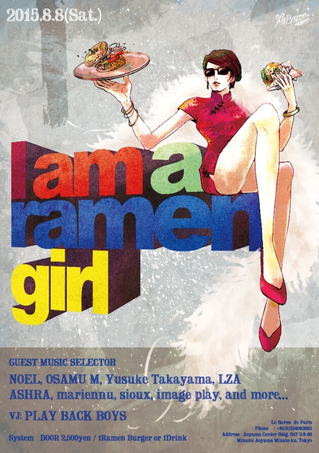 ラーメン女子博 15'@横浜赤レンガ倉庫のプロデューサー、森本聡子が「RAMEN × MUSIC × ART」をコンセプトにNewPartyを開催!! 当日はNY初!ラーメンバーガー(限定160個)をこの日の為にセレクト!更にお酒の肴にもぴったりなチャーシュー、煮卵のトッピングもご用意!そしてラーメン女子森本聡子のBirthday Bashも同時開催致します!!!