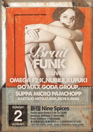 BRUIT/FUNK http://www.residentadvisor.net/event.aspx?721841 8.2 5:30pm 新宿Nine Spices Live ニウバイル スッパマイクロパンチョップ