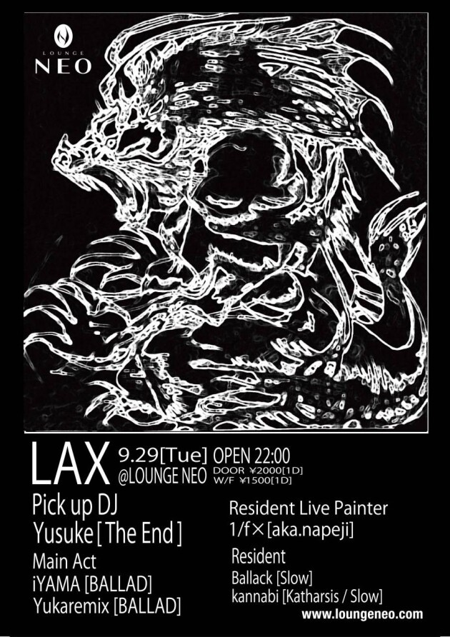 2014年9月、皆に惜しまれながらも閉店になってしまったModuleで産声をあげたLAX。2015年2月、LAXはLOUNGE NEOに拠点を変える。