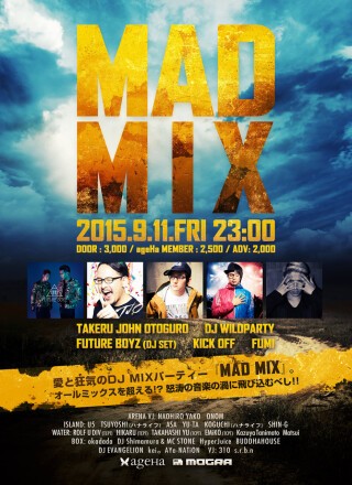 TJOとDJ WILDPARTYがレジデントを務めるスーパー・ハイブリッド・パーティー『TJOとワイパの愉快な仲間達』が、より、エッジーに、よりキャッチーになってやってくる!!愛と狂気のDJ MIXパーティー、その名も『MAD MIX』 オールミックスを超える!? 怒涛の音楽の渦に飛び込むべし!!