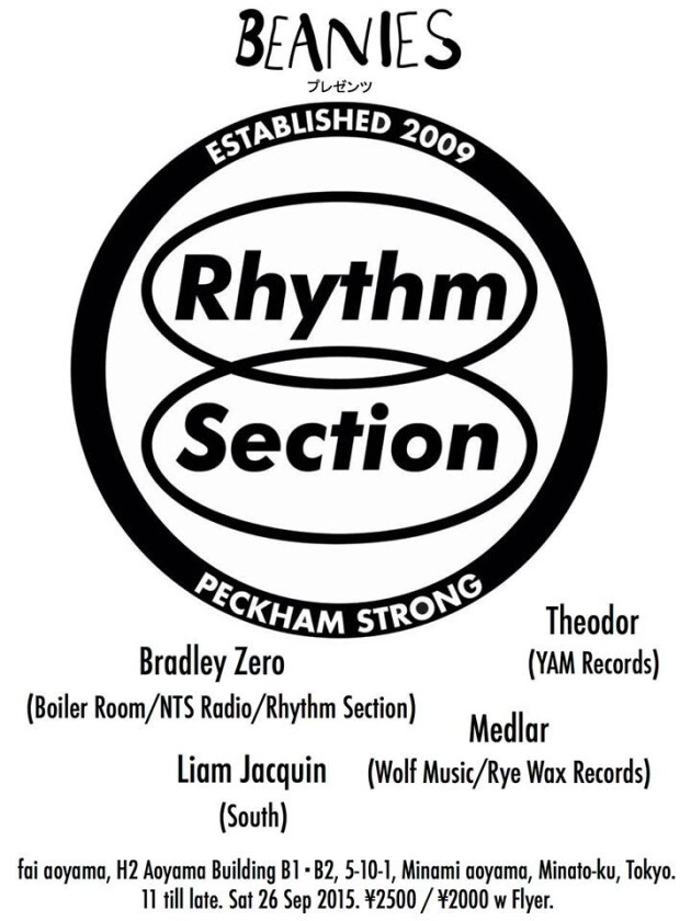 Boiler Roomを初め、ロンドンのアンダーグラウンドミュージックラジオ、NTS Radio, そして今回は彼自身がつくった南ロンドンはペッカムのレーベル、Rhythm Section の asia tourの最後を飾る東京。あるいみ世界中で、いま、1番有名かもしれない彼が9/26 fai aoyamaにてDJ setを初披露。