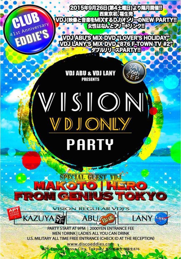 EDDIE’Sで活躍するVDJ ABU & LANYプレゼンツの西東京初・VDJオンリーパーティー!!