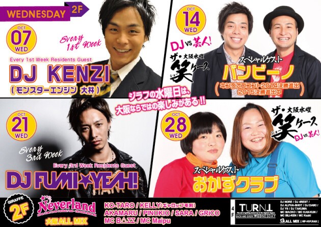 ジラフの水曜日2F(10月) DJ KENZI, バンビーノ, DJ FUMI☆YEAH!, おかずクラブ