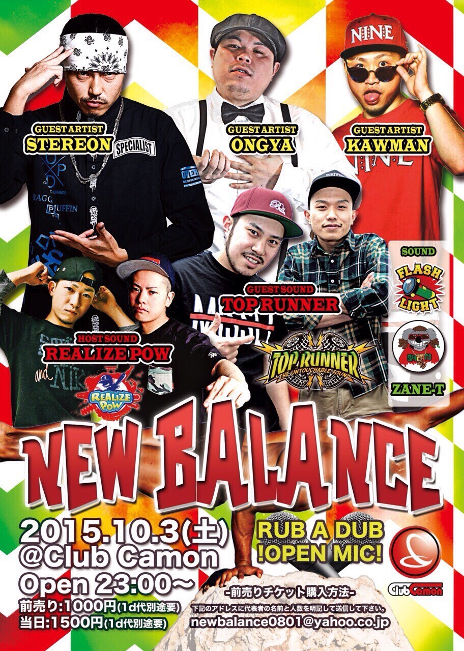 【NEW BALANCE】10/3(土)☆偶数月第1土曜開催『NEW BALANCE』☆☆GUESTにSTEREON、ONGYA、KAWMAN、TOP RUNNERなど豪華アーティストが登場★★ラバダブオープンマイクあります☆☆CLUB CAMONのLINE公式アカウント登録で割引特典あり★★