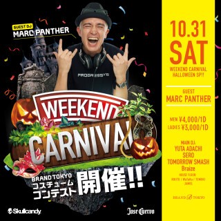 今年のハロウィンのトリを飾るのはBRAND TOKYO看板イベント「WEEKEND CARNIVAL」!! 初のGUEST DJは今年globe結成20周年を迎えますます活躍が期待される「MARC PANTHER」!