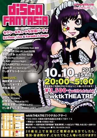 女装業界をリードするカリスマ女装DJ達がフロアを盛り上げ、女装シンガーや男の娘アイドル達による魅力的なステージ、お客様参加型の女装コンテストや、関西女装業界著名人達によるスペシャルトークショーなど、ポップなコンテンツからディープなコンテンツまで盛りだくさん★