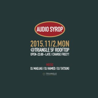 2015.11/2.MON AUDIO SYRUP #3 @TRIANGLE 5F ROOF TOP CHARGE:FREE!!! 22:00~LATE ◼︎DJ MADJAG TATSUKI HAMED