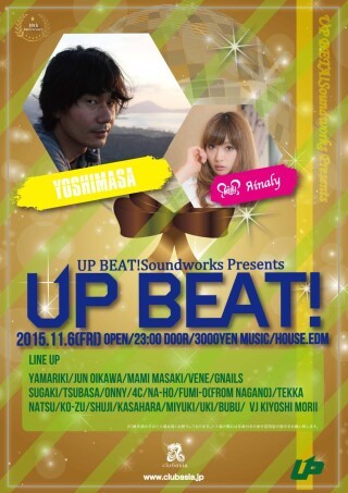 円熟期にも関わらず更に加速している不動のUpper House Music party 『UP BEAT!』 パーティーアニマル・パーティーガールが毎回集う本パーティーは、もはや誰をも無我無心に踊らせ、歓喜に飢えたクラウド達が自然と陶酔に陥るパーティーとして有名である。