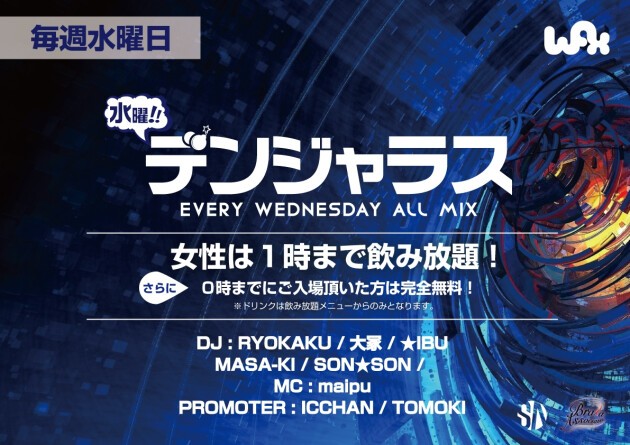 女性入場無料!!LADIES DELIGHT WEDNESDAY