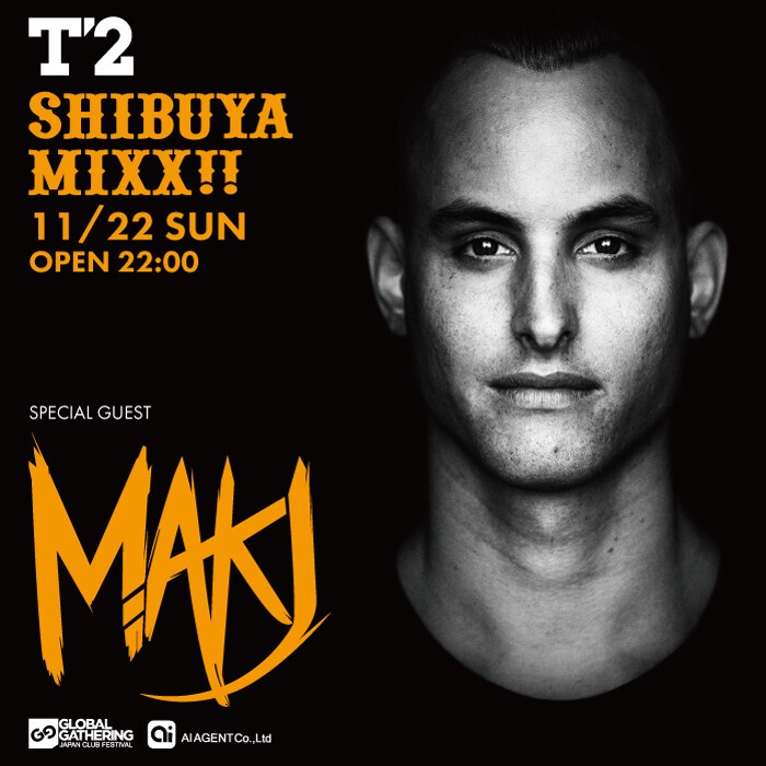【11/22(日・祝前日)誰もがご存知、全世界のトップEDMプロデューサーからサポートを受け、Beatportで見事1位を獲得した自身のオリジナル楽曲Countdownを始め輝かしいキャリアを積み重ねて来たEDMプロデューサー”MAKJ”が遂にT2SHIBUYAにて初公演を開催!】 かつて中国でプロのレースドライバーとして活躍していたMAKJ、15歳という年齢からターンテーブルでのDJプレイに没頭し始める、17歳でアメリカに戻る頃にはすでに将来のヴィジョンを見据えていたようだ。 彼のホームタウンの大学等でひっきりなしにDJとして呼ばれるようになったMAKJは、その後DJ AMよりスクラッチ等の直接指導を受けメキメキとDJとしての実力を上げていく。 アメリカで名が通るようになる頃には海外のブッキングも増え始め、遂に2013、2014年と続けてマイアミのULTRAミュージックフェスティバルに出演。更に2013年のTomorrow Worldではメインステージにてパフォーマンス。 2013年秋にはBingo Players, Bassjackersらと共にツアーを結構、続く2014年にはヨーロッパツアーを成功させる等世界規模で知名度を上げていく。 当然プロダクションキャリアも輝かしいもので、オリジナル、エディット、リミックス等がDavid GuettaやTiestoといった日本でも人気のアーティストにサポートされ続けているのはご存じの通りだろう。 Hardwellとのコラボ楽曲”Countdown”は、Revealed labelからリリースされ世界中でPlayされ、Beatportでも1位を獲得。続く”Encore”や”Revolution”等大ヒットを続けていく。 2014年もLil Jonとのコラボ曲” Let’s Get F*cked Up”や、Bassjackersとのコラボ曲”DERP”等がスマッシュヒットとなったのは記憶に新しい。 20代前半という若さながらMAKJのサクセスストーリーは華やかしく、今後も更にその才能は輝きを増していくこととなるであろう。