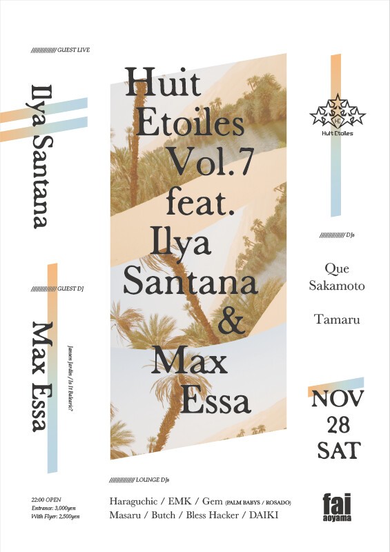 11月28日(土)遂に初来日のスペインを代表するコスミックアーティストIiya SantanaがSpecial Liveを披露、そしてMax EssaがHuit Etoilesに初登場。