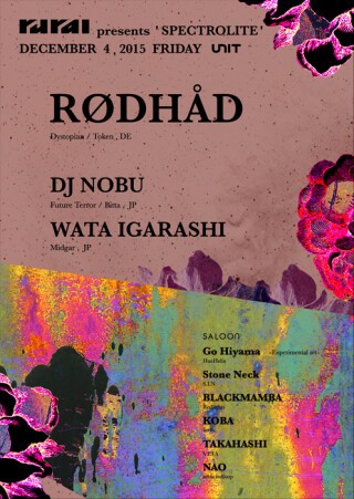 まず登場するのは、「rural 2013」、「rural presents The Marathon」と過去2度に渡りruralに出演を果たした生粋のベルリンテクノアーティストRødhåd。 ここ数年の大舞台でのプレイによって培われた経験値・世界観を再びUnitのフロアに投下する。 迎える日本人アーティストとしては、Future Terror/Bitta主宰、世界でエレクトロニックミュージックの幅の広さと深さを縦横無尽にDJで表現するDJ NOBU。 更に、今後多くのプロダクションリリースを控えるWata IgarashiがDJ/Liveハイブリッドセットでオープニングアクトを飾る。