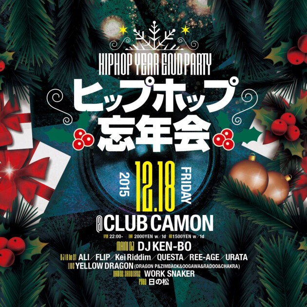 【ヒップホップ忘年会】12/18(金)☆DJ KEN-BOを筆頭に7名の豪華DJ陣が出演★★LIVEはYELLOW DRAGON、DANCE SHOWはWORK SNAKERが登場☆☆CLUB CAMONのLINE公式アカウント登録で割引特典あり★★