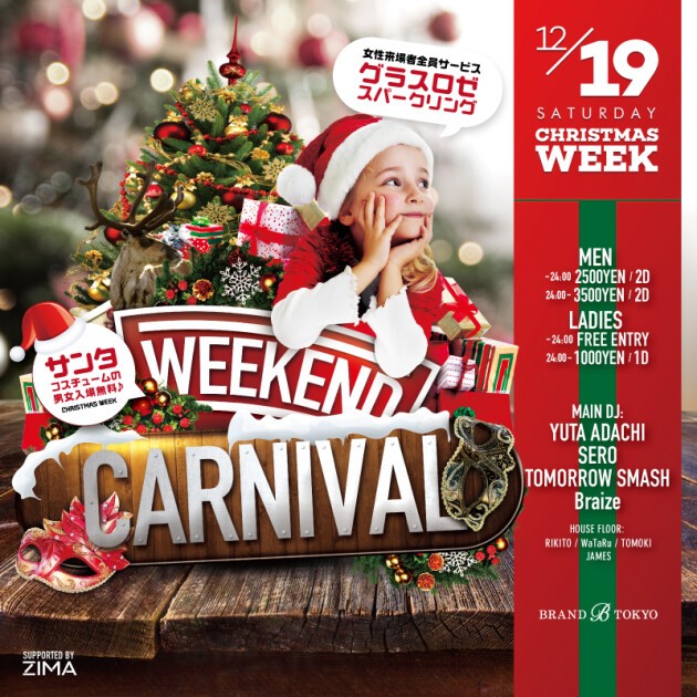 毎週土曜のBRAND TOKYO看板パーティ「WEEKEND CARNIVAL」テーマはもちろん「カーニバル」。
