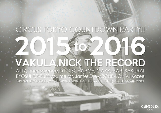ウクライナの才人VakulaとNICK THE RECORDによるCIRCUS Tokyoプレミアムカウントダウンパーティーが開催!!!!