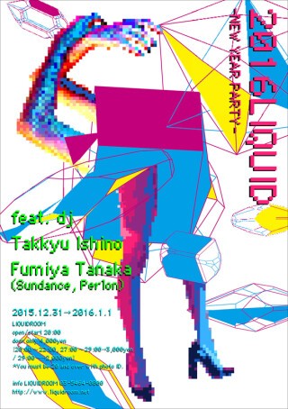 さてさて、2015年も大詰め迎えて12月、今年も恵比寿LIQUIDROOMで開催の名物カウントダウンでございます。毎年館内は大晦日から強烈、狂乱なグルーヴが蔓延するなか、元旦までひとっ飛び。にぎにぎしく新年をイーヴン・キックととともに迎え、そして元旦まで遊び通すという、もはや恵比寿にて10年以上続く奇祭の域にある集いです。今年の奇祭の司祭は、もちろん、あの人とあの人が登場。まずは、ここ数年はベルリンへと拠点を移し、ヨーロッパでの活動もますます活発さをましている田中フミヤ。フランスやポルトガルのレーベルからのリリースやトーマス・メルキオールとのTofu Productionsでのリミックス・ワークなどプロダクション方面もさることながら、欧州各地から南米まで世界中をDJで飛び回っている。そして本奇祭のもうひとりの依り代となる御柱、そのエネルギーのうねり、もはや狂いすぎるにもほどがある石野卓球登場。これがもはや10数年続く、恒例と裏切りのせめぎ合いなど、軽く斜め上を行く刺激が舞い踊るその場所を、これを奇祭と言わずしてなんと言う! 2016年に向けて、レッツラー、ゴー!(河村祐介)