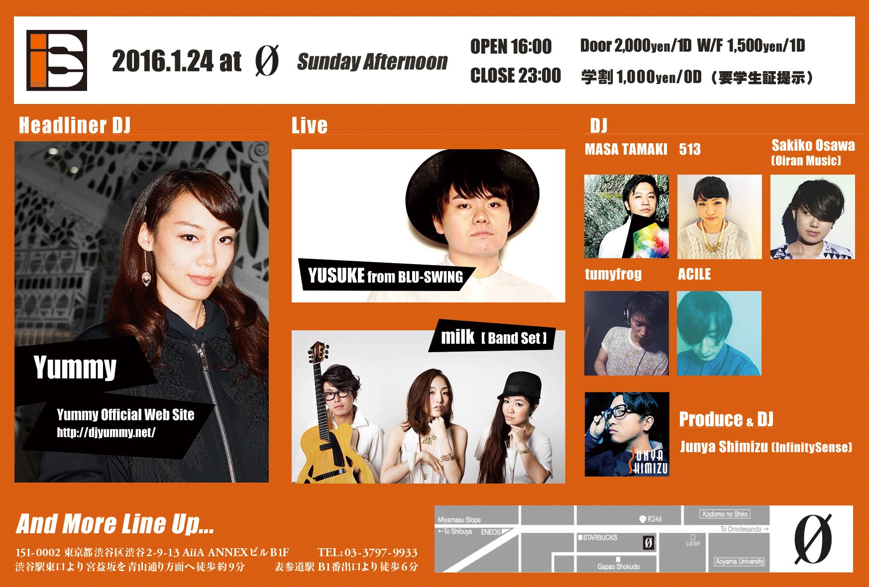 Door:2,000yen/1D/W/F:1,500yen/1D