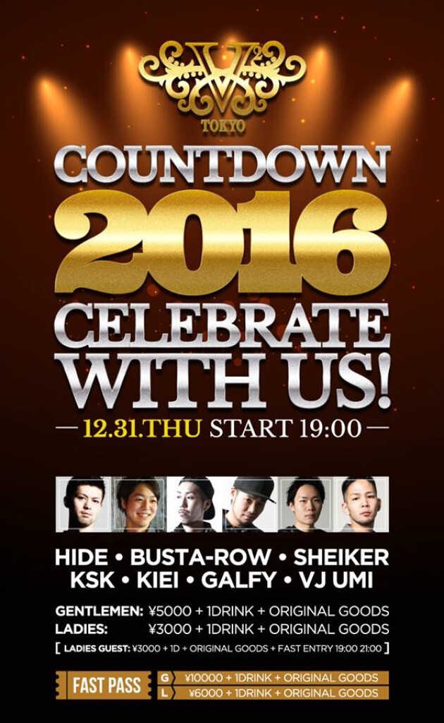 今年最後の大晦日12/31(木)は『2016 V² TOKYO COUNTDOWN PARTY』を開催!!