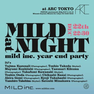 Numero、VOUGE、L’OFFICIEL等のモード誌はもちろんのこと、メジャー広告やCM等、各界の第一線で活躍するフォトグラファーとスタイリストのクリエーターズエージェンシーMILD INC.のYEAR END PARTY 。東京中のコアなアーティスト仲間が一堂に集うクリエイティブな夜をお楽しみ下さい。