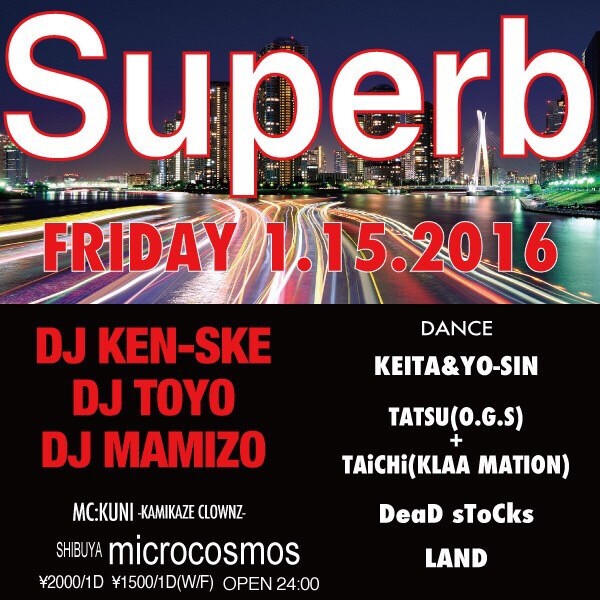 1月15日の土曜日金曜日はぜひSuperb at 渋谷Microcosmosへ!