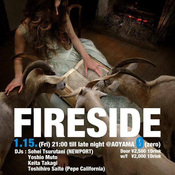 好評だったパーティー「POOLSIDE」「PARKSIDE」の続編となる「FIRESIDE」が青山ゼロで開催です。寒い夜だから火のちかくでほっこりなイメージ。炉端的選曲は大人のベテランDJ4人で。