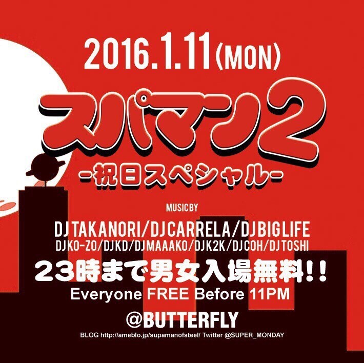 バタフライは、毎日23時まで男女入場無料になりました!!