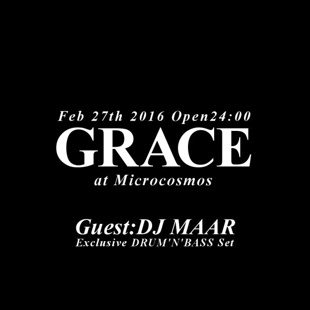 唯一無二のラインナップ、エクスクルーシブプランニングにより、 DURUM'N'BASSシーンに一石を投じるべくローンチされる【GRACE】。 GUESTには、16歳からHOUSE DJとしてキャリアをスタートさせ、ジャンルの枠にとらわれないフレキシブルな活動で アンダーグラウンド、オーバーグラウンド問わず数多くのクラウドを魅了し続けるDJ MAARが初公開となるExclusive DRYM'N'BASS Setを披露する。 ダンスミュージックシーンだけではなく、ファッションにも精通したアーティストを招聘。 従来のDRUM'N'BASSパーティとは一線を画する、他類を見ないラインナップとコンテンツで作り出す優美で上質な空間をぜひ【GRACE】で体感して欲しい。