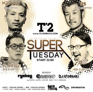 東京の中心地、渋谷の新たな遊び場「T2 SHIBUYA」が、毎週火曜日に開催するパーティー「SUPER TUESDAY」。 「F××k the weekend We party on Tuesday」のコンセプトのもと、週末でもあり得ない程のDJ達が贅沢に集い、平日火曜の夜をどこよりも最高に盛り上げます。音楽はジャンルレスに、誰もが楽しめるEDMはモチロン、海外でヒットしている様々なジャンルを絶妙なスキルで織り交ぜ選曲します。 最新のシステムや照明が設置された海外の大箱を彷彿とさせる空間の中、他では体感できないアツい一夜をお楽しみください。